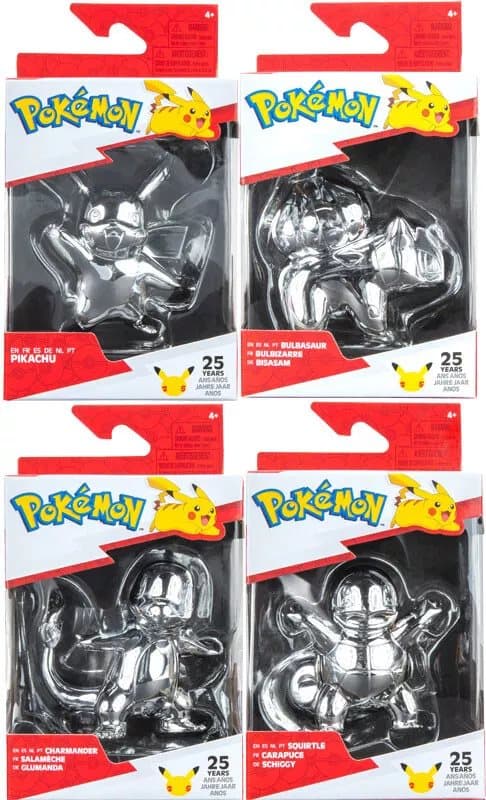 Pokemon 25th Celebration 3" Silver Figure Pikachu,Squirtle, Charmander,Bulbasaur