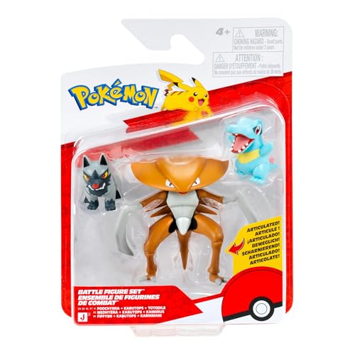 Pokémon Battle Figure 3-pack PKW4554 - Poochyena, Kabutops, Totodile - Official Pokemon Toy for children 4+ years