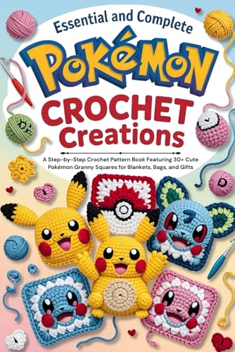Essential and Complete Pokémon Crochet Creations: A Step-by-Step Crochet Pattern Book Featuring 30+ Cute Pokémon Granny Squares for Blankets, Bags, and Gifts