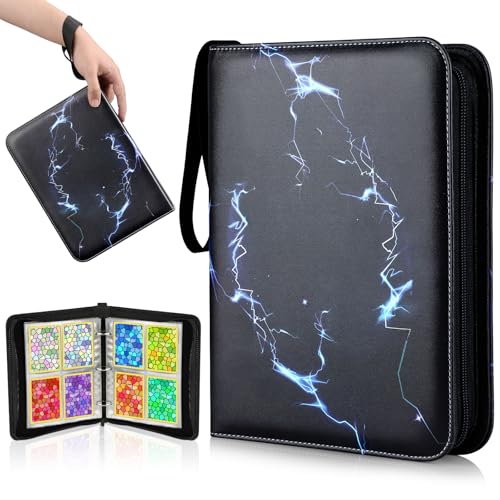 3D Pärm för Pokemon - Samlarkortalbum med 3D-Förhöjd Elementär Design i PU-läder med Dragkedja - Stor Kortpärm med 9 Fack för 360 Kort. Card Binder/Album för Pokemon Kort