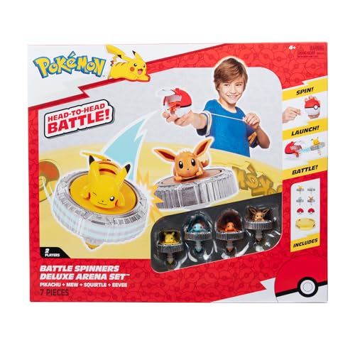Bandai - Pokémon Arena Pack + 4 spinnare + Pokémon Arena + 2 utskjutningsanordningar + 4 Pikachu, Eevee, Caparchips och Salawie-snurror - leksak för barn 4 år och uppåt