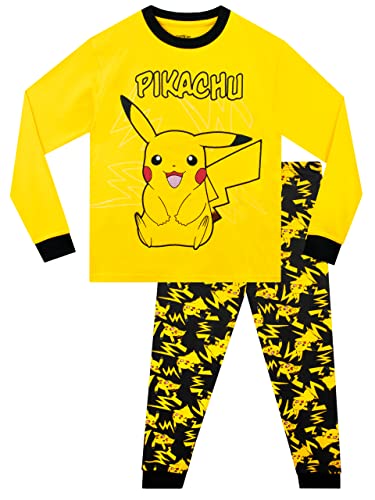 Pokémon Pyjamas för barn - pyjamas för barn, onesie dragkedja hel dragkedja, ålder 4–14 år, julklapp, Gul, 9-10 år