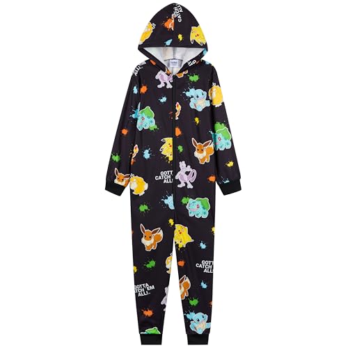 Pokemon Onesie för pojkar, 4–14 år, overall pojkar – gosig dräkt barn för barn – pyjamas pojkar, Svart/flerfärgad, 7-8 år