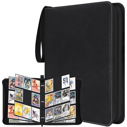 WISYOK Samlarkortalbum, Stort, Pokémon Samlaralbum 900 Kort med 50 Sidor, Kortpärm av Vattentät Mocka, Bärbara Samlarkort, Mapp för Fotbollskort, Fotokort, MTG, TCG (Svart)