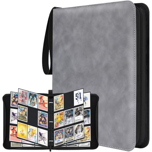 WISYOK Samlarkortalbum, Stort, Pokémon Samlaralbum 900 Kort med 50 Sidor, Kortpärm av Vattentät Mocka, Bärbara Samlarkort, Mapp för Fotbollskort, Fotokort, MTG, TCG (Grå)