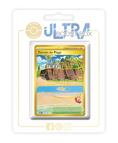 Terrain de Plage (Beach Court) 263/182 Shiny Gold Trainer - Ultraboost X Écarlate et Violet 4 - Faille Paradoxe Box med 10 franska Pokémon-kort