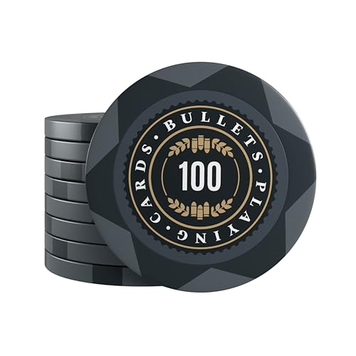 Bullets Playing Cards, 25 x Adriana Clay Poker Chips för pokerset, blandade värden, diameter 4 cm, vikt 14 g (100 st)