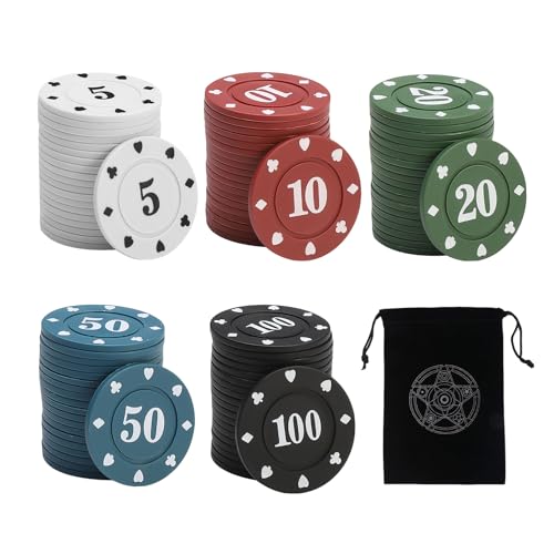 KSBBHDS 100 pokerchips med 1 förvaringsväska, spelpokerchips, femfärgad chipset, matemätare, brädspel-pokerschips, interaktiva leksakschips, festspelsrekvisita