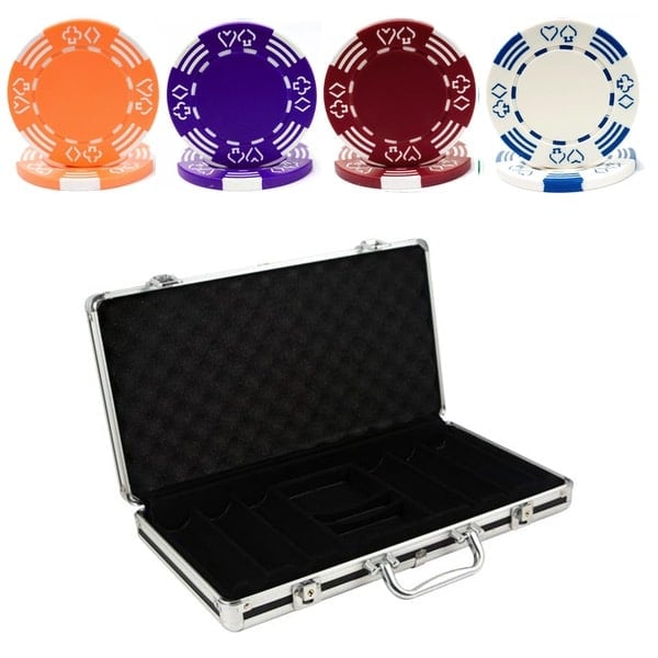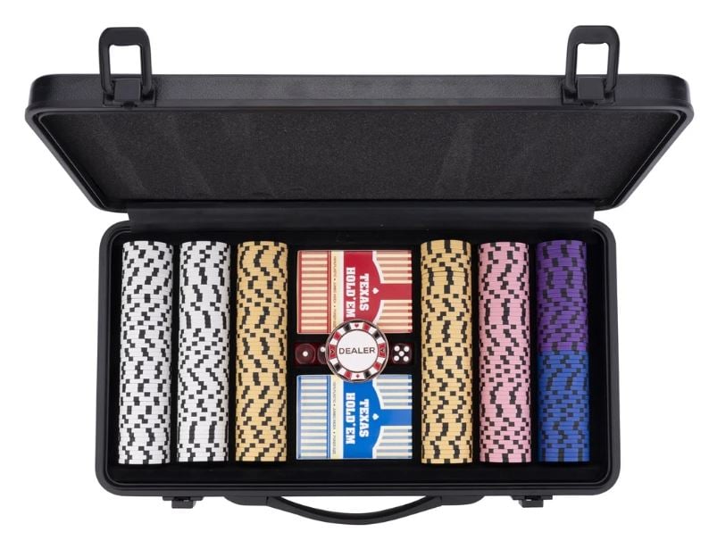 Pokerset med 300 lasermarker & spelkort & 5 tärningar & 3 dealermarker & 2 nycklar pokerfodral