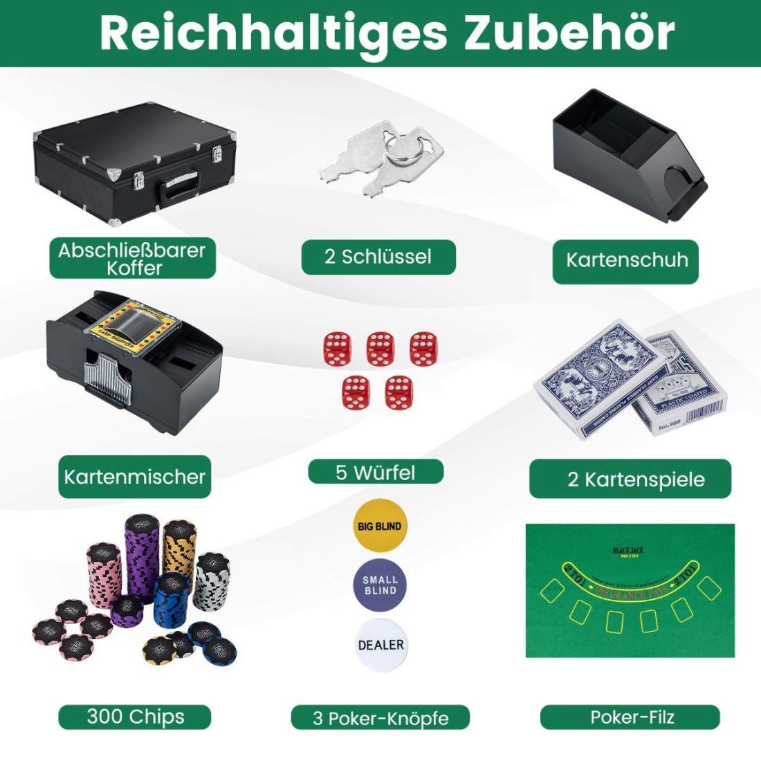 COSTWAY pokerset med 300 laserchips, pokerväska med 2 spelkort, dealer-knapp och 2 nycklar, komplett set för poker, aluminium Kasino pokerväska, låsbar med lekmatta