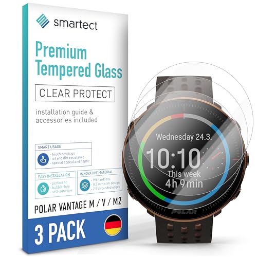 smartect [3 Stycken, Clear] Skärmskydd kompatibel med Polar Vantage M/V / M2, HD Screen Protector i Härdat Glas 9H, Bubbelfri Installation, Anti-Fingeravtryck