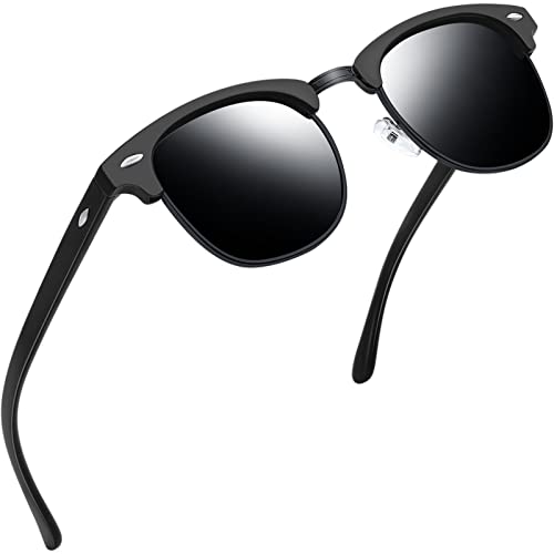 Joopin Klassiska Solglasögon Herr Dam med UV 400-skydd och Retro Halvram Solglasögon Polariserade Fiske Sunglasses Unisex för Fiske Körning Golf Matt Helsvart