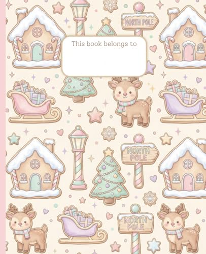 North Pole Reindeer Kids Notebook – Cute Pastel Holiday Sugar Cookie Journal | 7.5×9.25” Ruled (120 Pages): Adorable kawaii winter notebook for writing, school notes, and creative journaling