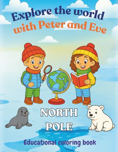 Explore the world with Peter and Eve. North Pole: Educational coloring book for kids