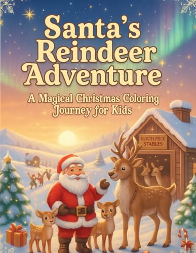 Santa’s Reindeer Adventure: A Magical Christmas Coloring Journey for Kids: Fun Holiday Coloring Book with Santa, Reindeer, and North Pole Magic
