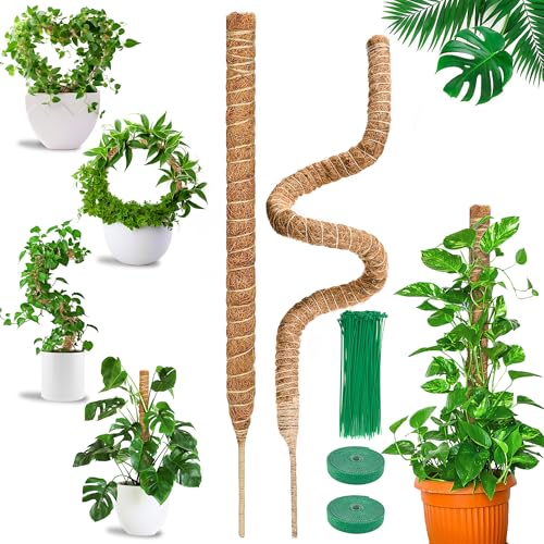 COZCLAM Moss-stång, 2 st 60 cm mossstång för Monstera, böjbart ostväxtstöd, Coco Coir Pole för inomhus klätterväxter, Monstera stöd, växtpinnar stöd för Creeper-växter växer uppåt