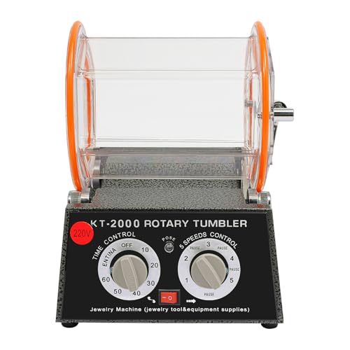 BAOCHADA 220 V polermaskiner poleringstrumma kulkvarn roterande poleringsmaskin med timer och 5 hastighetskontroll, roterande tumbler poleringtrumma för smycken hårdvara polering (150 W KT2000)