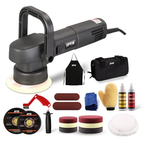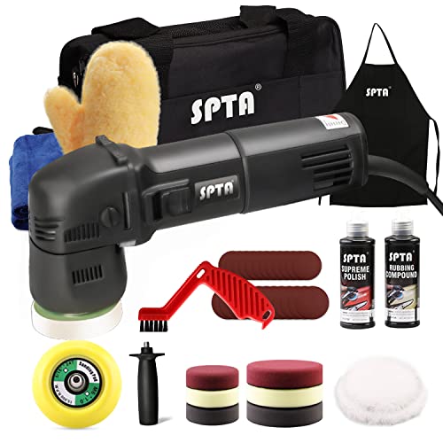 SPTA Poleringsmaskin, 900 W excentrisk polermaskin, 6 variabel hastighet, med 3 delar, 125 mm och 3 delar, 150 mm poleringssvamp, avtagbart D-handtag, 3 m kabel, för polering av bil, båt, motorcykel