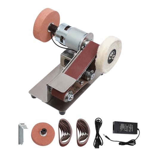 Poleringsmaskin, minibandslipmaskin, bordsslipmaskin för gör-det-själv, träbearbetning, metallslipning, knivtillverkning, silver 15 x 12 x 18 cm