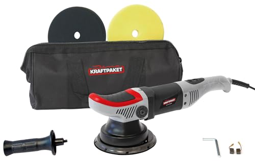 Dino KRAFTPAKET 9 mm – 650 W excentrisk polermaskin för bil, båt, bil i set med stödplatta, polerdynor och väska, 125 mm + 150 mm, grå
