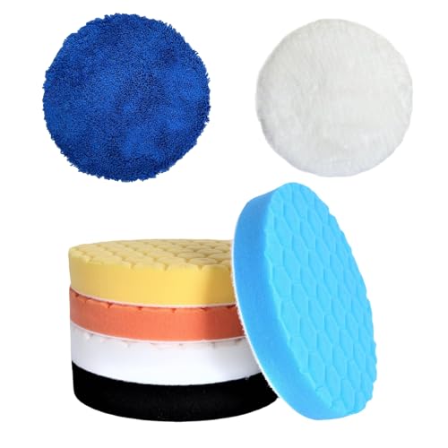 YALiya 7 stycken poleringssvampar 150 mm, poleringsdynor för bil, polerfäste vax svampar, handpoleringssvamp, lätt att rengöra, för sladdlös skruvmejsel, excentrisk polermaskin, slipmaskin
