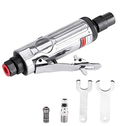 Air Die Grinder, Mini Protable 1/4'' Cut Off Skärande Luft Pneumatisk vinkelformslip Polermaskin Slipning Rengöringsverktyg med säkerhetsutlösare(Silver)
