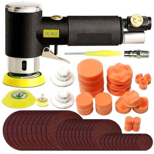 63-i-1 tryckluft excenterslipmaskin mini polermaskin bil poleringsset, excentrisk slipmaskin tryckluft vinkelslip polermaskin/polering med sandpapper x 30 svamp x 21