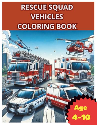 Rescue Squad Vehicles Coloring Book: 30 Fire, Police, Ambulance & Rescue Vehicles to Color , for Kids Ages 4-10