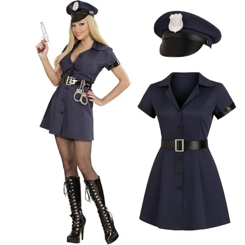 W WIDMANN MILANO Party Fashion – Kostym polis, klänning, bälte, hatt, uniform, polis, temafest, karneval