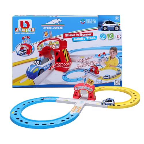 Bburago Junior - Shake-It Runner Infinity Track Police - Leksaksracingbana med polisbil, Shake & Go-funktion, officiell polislicens, rekommenderad ålder 24+ månader