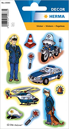 Herma 15083 dekal "polis" av papper, självhäftande klistermärke för pojkar, flickor, småbarn och födelsedagar, 30 klistermärken för polisbil för barn