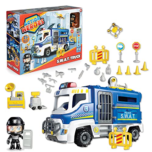 Action Heroes Pinypon S.W.A.T. Truck, polisbil, med många tillbehör, 1 karaktär, för barn från 4 år, känd ACN06010, flerfärgad