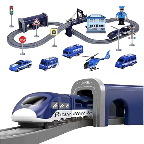 BASAMOU elektriska tåg för barn 3 4 5 6 7 8 år tåg leksak spårbilar, barn racingbana, pedagogisk leksak barn födelsedagspresent jul (polisbil)