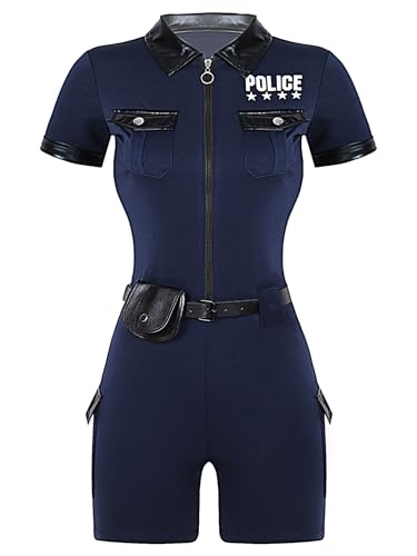 Miutii Dam polisdräkt kortärmad bodyoverall med bälte tillbehör polis kostym uniform halloween karneval karneval party kläder marinblå S