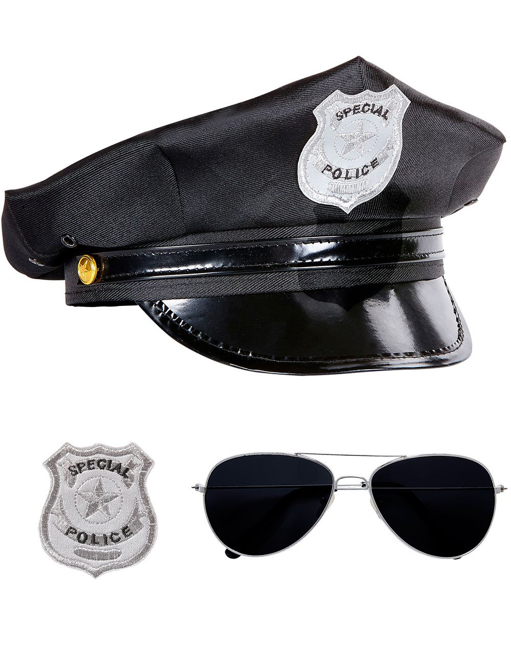 Smiffys polishatt, svart med märke, filt, poliser och rånare fin klänning, poliser och rånare utklädningshattar