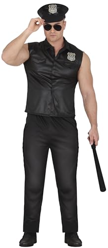 FIESTAS GUIRCA Sexig polisdräkt för män - svart polisuniform med polismössa - polisdräkter för män storlek L 52-54