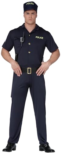FIESTAS GUIRCA Polisdräkt för män - Marinblå polisuniform med polismössa - polisdräkt herr storlek S 46-48