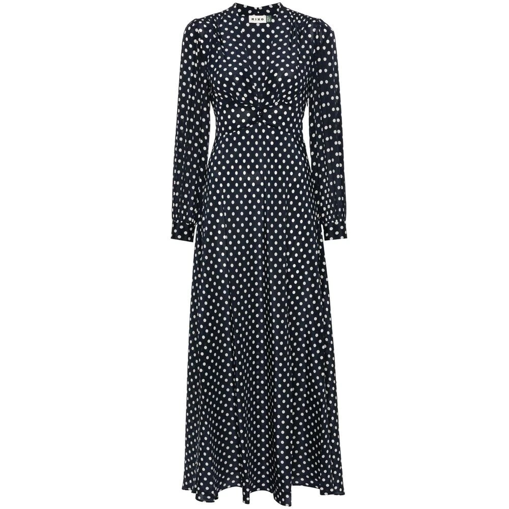 Rixo, Klänningar , Dam, M, Navy Blue Polka Dot Silk Dress