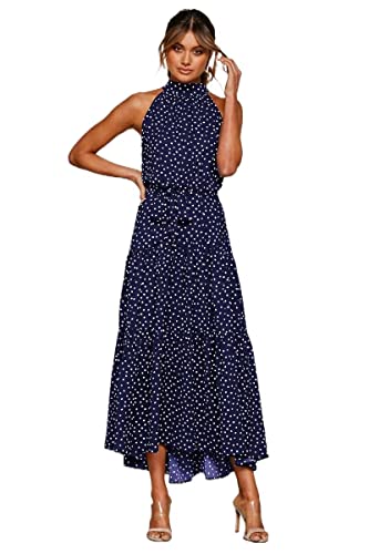 Damklänning Halter Neck Ärmlös Elegant Sexig Polka Dot Print Tie Klänning Beach Maxi Dress (Color : W6, Size : M)