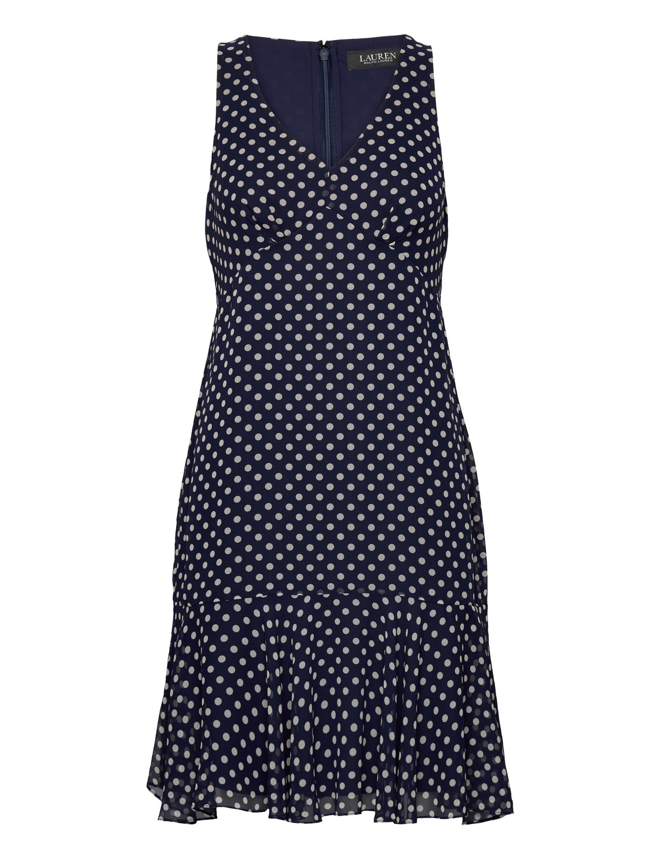 Polka-Dot Chiffon Sleeveless Dress Blue Lauren Ralph Lauren