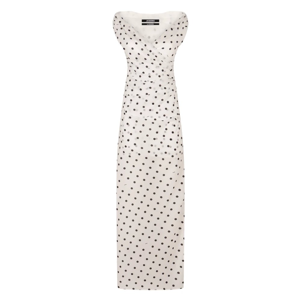 Jacquemus, Klänningar , Dam, S, Polka Dot Print Lång Klänning med Sidoslits