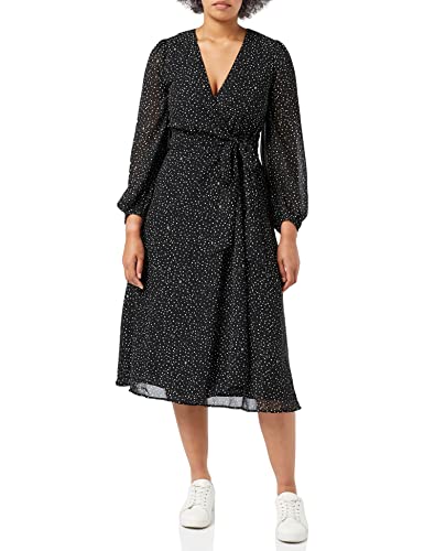 Tommy Hilfiger Georgette Wrap Midi Dress Ls klänning, Th polka dot/svart vit, 34 SE