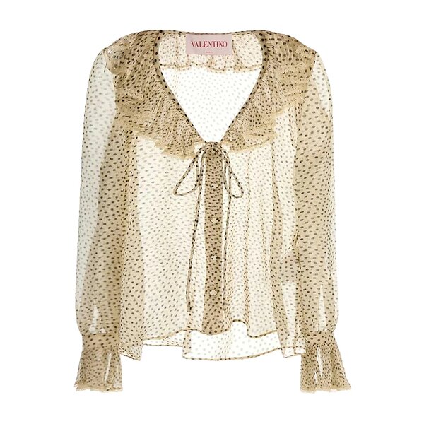 Valentino Polka Dot Ruffle Neck Tie Blus (Dam)