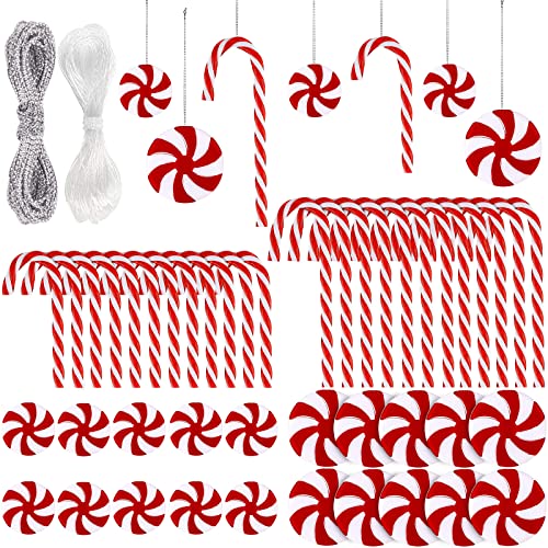XIMISHOP 48 st jul polkagris hängande ornament godis klubba julgransdekorationer plast vriden krycka ornament för jul hantverk inomhus utomhus dekor (röd och vit)