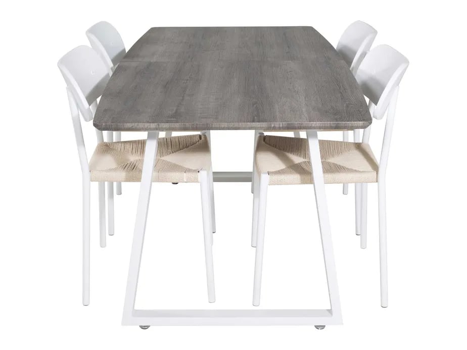Venture Design Inca & Polly matgrupp Grå/vit 4 st stolar & bord 160 x 85 cm