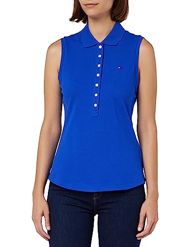 Tommy Hilfiger Dam smal krage detalj polo NS S/S, ultrablå, L, Ultrablå, L