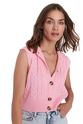 TRENDYOL Dam crop polo krage stickad tröja tröja rosa, S, ROSA, S
