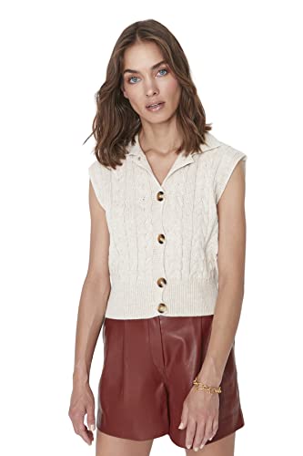 Trendyol Kvinnors ECUS arm spets detailed polo krage stickade kläder tröja, ecru, S