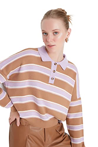 Trendyol Kamel färg blockerad polo krage stickad tröja, L