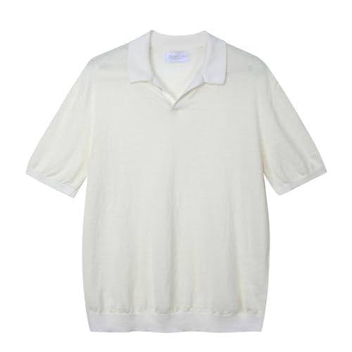 Diana Studio, Polo herr 100% linne, enfärgad, tillverkad i Italien, vit, L, Naturlig/vit, L